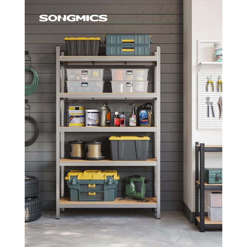 Ragioni principali per cui la scaffalatura SONGMICS è quella giusta: Robusta struttura in acciaio: Una rinforzata struttura in acciaio e robusti ripiani in pannello di truciolato offrono un supporto sicuro. Supporto rinforzato: La traversa supplementare su ogni ripiano migliora la stabilità. Superficie antiruggine: La superficie zincata è resistente alla ruggine e non può essere danneggiata facilmente. Elevata capacità: Ogni ripiano di questo scaffale può sostenere fino a 175 kg. Ripiani regolabili: Ogni ripiano è regolabile in altezza;