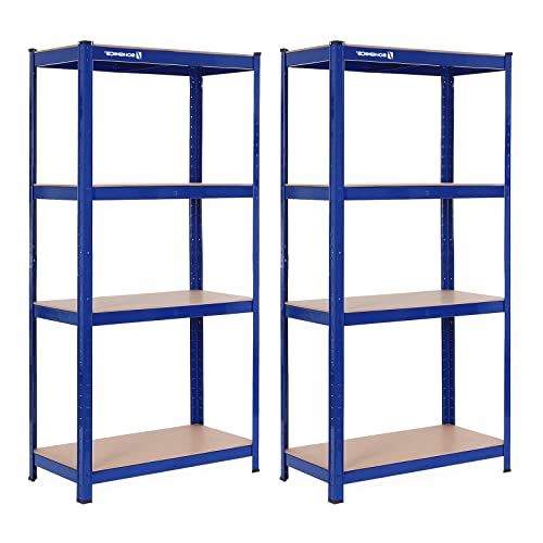 SONGMICS Set di 2 Scaffalature a 4 Ripiani, Scaffale in Acciaio, Montaggio Rapido, Utensili, Strumenti in Garage, Magazzino, Ripostiglio, Portante 520 kg, 40 x 80 x 160 cm, Blu GLR88Q