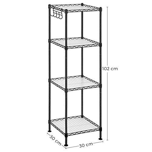 SONGMICS Scaffale da Bagno, Scaffale Portaoggetti in Metallo Robusto, Max Portata 80 kg, con 4 Pannelli in PP, Ganci Rimovibili, 30 x 30 x 102 cm per Spazio Stretto, Nero LGR104B01