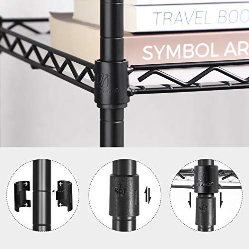 COSA RICEVI: Uno scaffale portaoggetti a 4 livelli verniciato a polvere per resistere alla ruggine, fogli in PP, ganci rimovibili, 4 piedini regolabili vestiti ganci rimovibili, design regolabile, espandibile e personalizzabile, e un facile montaggio che non richiede nessun attrezzo