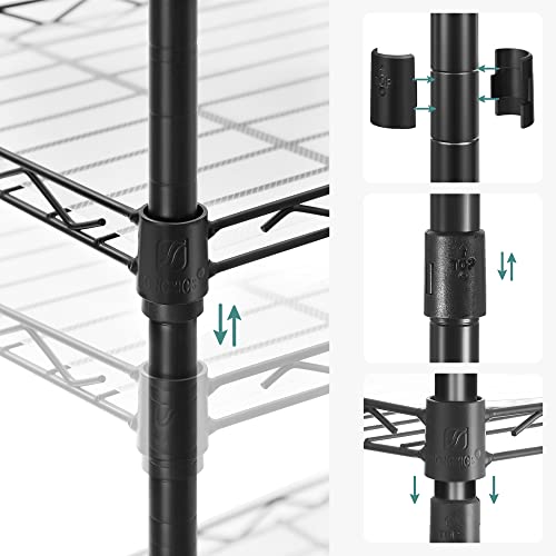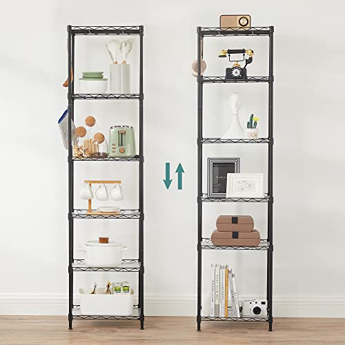 SONGMICS Scaffale Portaoggetti di Metallo a 6 Livelli Regolabili in Rete, con Pannelli PP, 8 Ganci a S, Organizzatore per Garage, Cucina, Soggiorno, Salvaspazio, Max Carico 120 kg, Nero LGR116B01