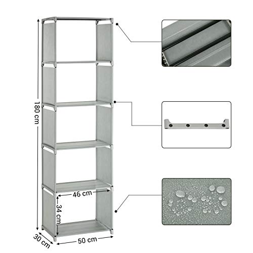 SONGMICS Scaffale Portaoggetti a 5 Ripiani, Libreria in TNT, Portabiancheria, Ogni Ripiano Regge Fino a 5 kg, 50 x 30 x 180 cm, per Soggiorno, Camera da Letto e Guardaroba, Grigio LSN15GY