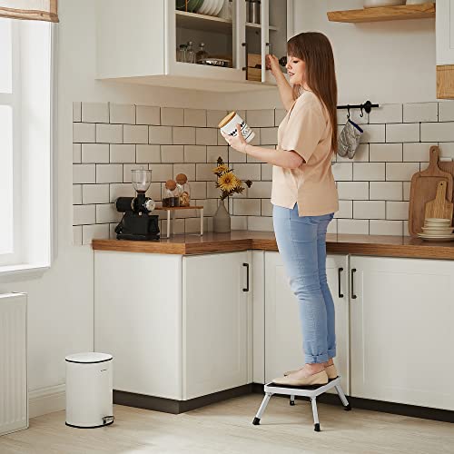 SONGMICS Scaletta, Sgabello Pieghevole, Acciaio, Conforme alla Norma EN 14183, Piano in Gomma Antiscivolo, per Bagno, Cucina, Portata fino a 150 kg, 37,5 x 26,5 x 17,5 cm, Bianco GSL01WT