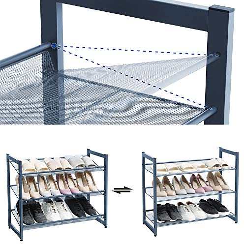 SONGMICS Scarpiera a 3 Ripiani di Rete Metallica, Scaffale Portascarpe Impilabile, Livello Piatto o Inclinato, per 9/12 Paia di Scarpe, Blu LMR03BU