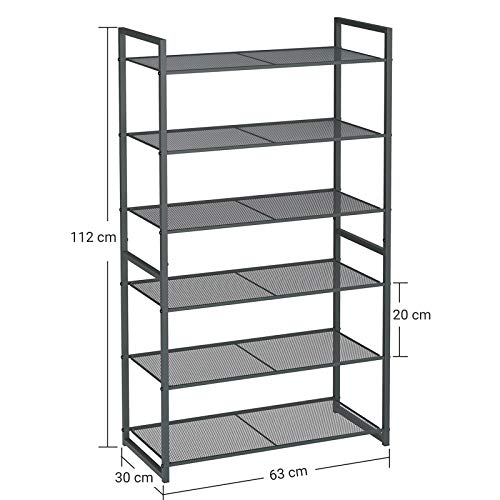SONGMICS Scarpiera a 6 Ripiani, Scaffale Portascarpe Impilabile, Organizzatore per 18-24 Paia di Scarpe, Metallo, 63 x 30 x 112 cm (L x P x A), Grigio Fumo LMR86GC