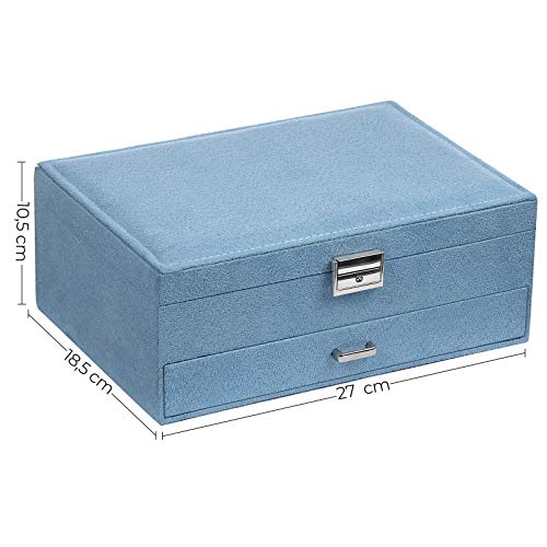 SONGMICS Scatola Portagioie, Custodia per Gioielli, Portagioielli a 2 Ripiani, con Cassetto e Chiave, per Anelli Collane Orologi Orecchini, Blu Chiaro JBC156Q01
