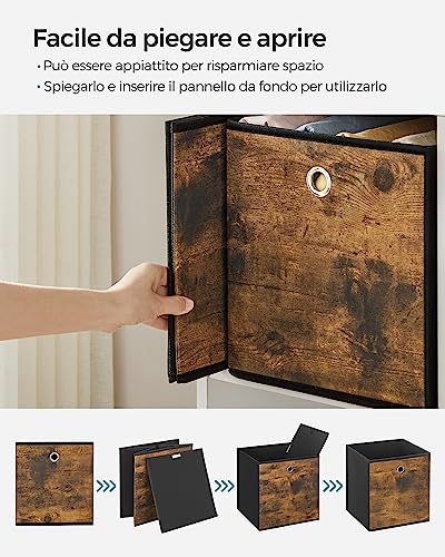 SONGMICS Scatole Portaoggetti, Set di 6 Contenitori con Manico, in Tessuto Oxford e Tessuto Non Tessuto, 33 x 33 x 33 cm, per Scaffali a Cubo, Pieghevoli, Marrone Vintage e Nero RFB133B01