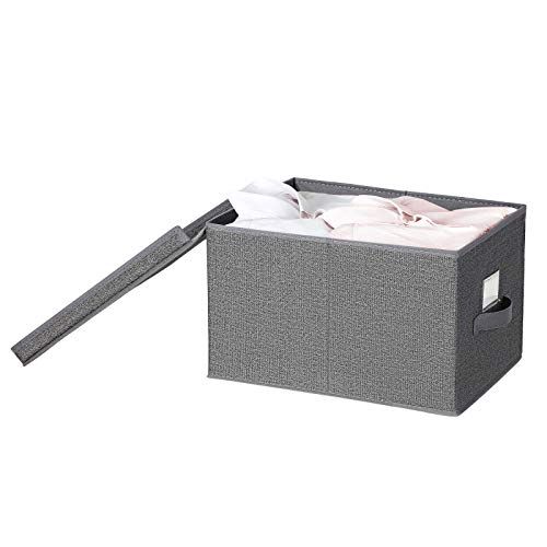 SONGMICS Set di 3 Scatole Portaoggetti Pieghevoli con Coperchio, Contenitori in Tessuto con Portaetichetta, Organizzatore, 40 x 30 x 25 cm, Grigio Fumo RYFB03G
