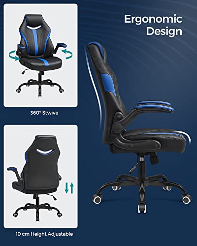 SONGMICS Sedia da Gaming, Sedia per Computer, Poltrona da Ufficio Ergonomica, con Poggiatesta, Braccioli a Ribalta, Regolabile in Altezza, per Telelavoro, Studio, Nero e Blu OBG029Q01