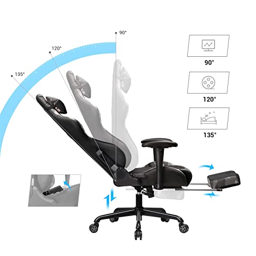 SONGMICS Sedia Gaming con Poggiapiedi, Sedia Girevole da Ufficio, Poggiatesta, Ergonomica, Capacità 150 kg, Cuscino Lombare, Schienale Alto, Similpelle Rete Traspirante, Nero e Camuffamento RCG52GYV1