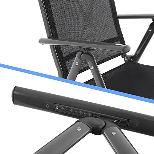 SONGMICS Sedia da Giardino Pieghevole, Sedia da Esterno con Struttura in Alluminio Resistente, Schienale Reclinabile a 8 Angoli, Max Portata 150 kg, Nero GCB02BK