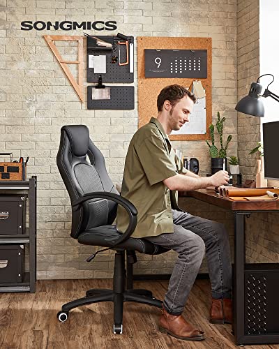 SONGMICS Sedia da Ufficio Girevole, Altezza Regolabile, Poltrona da Gaming, Sedia da Computer, con Meccanismo di Inclinazione, Nero e Grigio OBG56BG