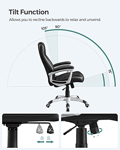 SONGMICS Sedia da Ufficio Stabile, Resistente, Durevole, Altezza Regolabile, Ergonomica, Nero, OBG21B