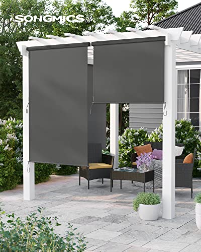 SONGMICS Tenda da Sole Verticale, Estensibile, 2.5 x 1.6 m, L x P, Tenda da Sole Verticale per Terrazza e Balcone con Cassonetto, Protezione dal Sole e dal Vento, Schermo Privacy, Grigio GSA165GY