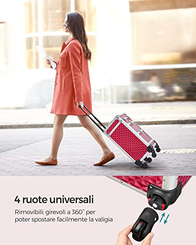 SONGMICS Valigetta Trucchi, Valigia Porta Trucchi, Trolley Make Up, 2 Cassetti, Grande, 34 x 24 x 56 cm, Ruote Girevoli a 360°, Beauty Case da Viaggio, per Truccatori, Idea Regalo, Rosso JHZ08RD