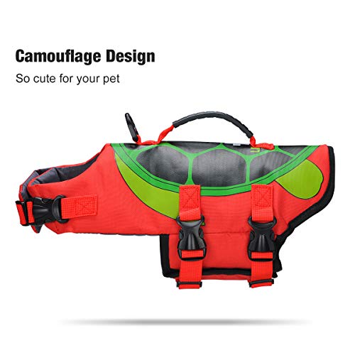 Design elegante: con motivo a tartaruga, per rendere il vostro animale domestico carino e unico. Il colore lo rende facile da identificare di notte o di giorno. Dispone di cinghie in nylon regolabili e fibbie a sgancio rapido per il fissaggio del giubbotto di salvataggio e per chiuderlo in sicurezza.