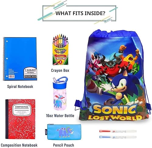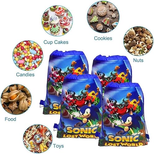 Sonic Coulisse Borsa, 12 Pezzi Sonic Borsa per Feste con Coulisse, Bambini Compleanno Festa Borsa Cartone Animato Tema Festa Coulisse Borsa Compleanno Festa Borsa per Bambini Festa
