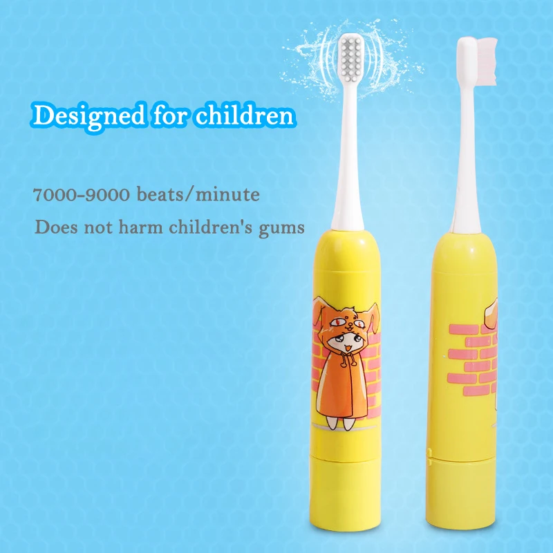 Sonic Electric Toothbrush For Kids Gum Massage Brush Oral Care Dry Battery Tooth Brush Heads yellow for boys/girls