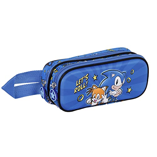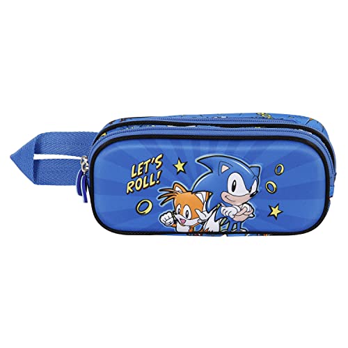 Sonic The Hedgehog - SEGA -Sonic Lets roll-Astuccio 3D Doppio, Blu, 22 x 9.5 cm
