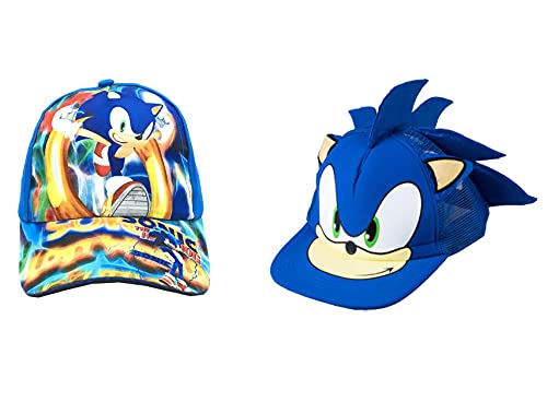 Sonic Hedgehog 2 simpatici berretti da baseball ispirati al cartone animato, cappellino regolabile, per ragazzi e ragazze, 2 pezzi, blu, Blu, Taglia unica