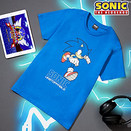 Sonic Maglietta Bambino, T Shirt per Ragazzo in Cotone 4-14 Anni, Maglia A Manica Corta, Regalo per Gamer (Blu, 4-5 Anni, 4_Years)