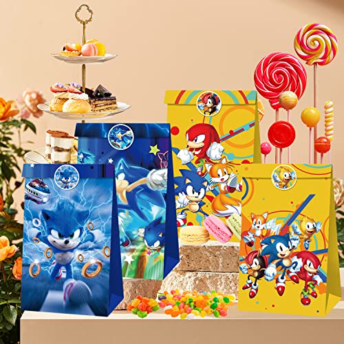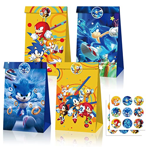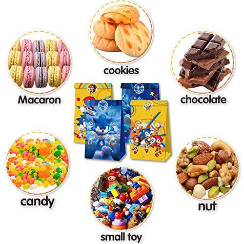 Sonic Sacchetto per Caramella, 12 Pezzi Sacchetti Regalo di Carta, Sacchetti Regalo per Feste con 18 Adesivi, Sacchetti Compleanno Bambini, Sacchetti Carta Kraft, per Bambini Feste di Compleanno