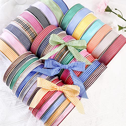 Colore classico: il nostro nastro Gingham è progettato con motivo a quadri, semplice e classico, luminoso e vivace, accessorio attraente che può essere facilmente combinato con altri lavori artigianali, migliora l'atmosfera gioiosa di festival, feste e matrimoni.