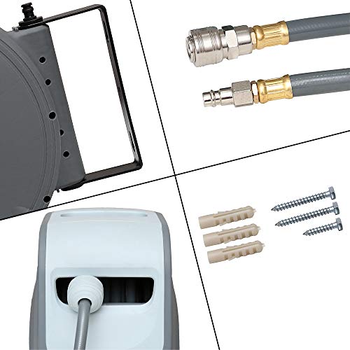Ampia applicazione: l'avvolgitore per tubo dell'aria compressa è adatto per compressori, officine, studi, garage, case e industrie. Forniamo il materiale di fissaggio in modo che il tubo possa essere avvolto perfettamente sull'avvolgitubo ad aria compressa e consente di lavorare in modo più efficiente.