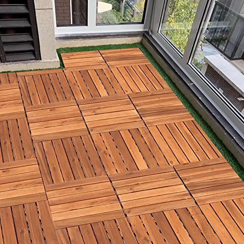 Sonnewelt - Piastrelle in legno di acacia a effetto mosaico, 30 x 30 cm, sistema a incastro, per terrazze e balconi, 33 pezzi (3 m²)