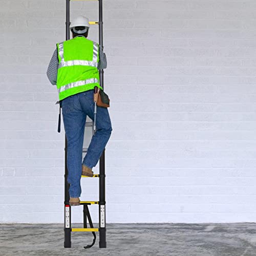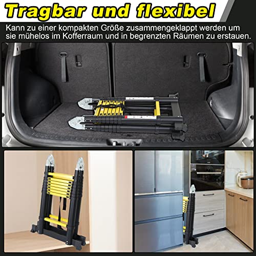 Sonnewelt Scala telescopica, in alluminio antiscivolo, portata 150 kg/330 kg, scala allungabile, scala in alluminio con maniglia, scala multiuso (nero e giallo, 1,9 m + 1,9 m)