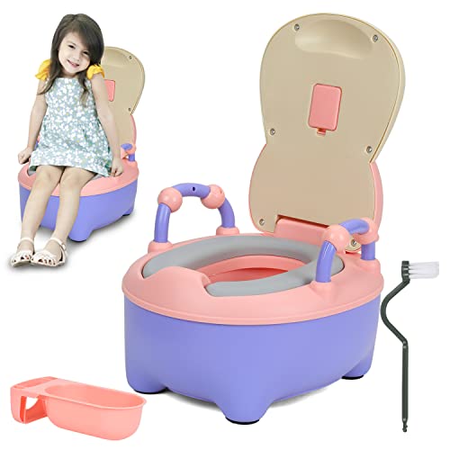 Sonnewelt Sedile WC per bambini, vasino per bambini, tipo di cassetto, per WC con manici, spazzolino, morbido cuscino in poliuretano, protezione anti-schizzi, colore rosa