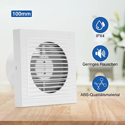 Ventilatore da bagno da 100 mm per ogni casa: con un diametro del tubo di 98 mm, una potenza di 12 W e una quantità di aria di 130 m³/h, questa ventola di scarico è adatta per case, cucine, bagni, WC e molto altro ancora.