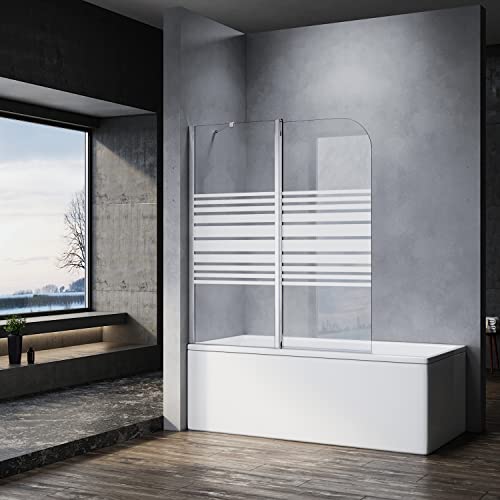 SONNI Parete Vasca da Bagno Doccia in Smerigliato,Parete Sopravasca 5mm Vetro Trasparente Temperato con Barra Stabilizzatrice 120x140cm