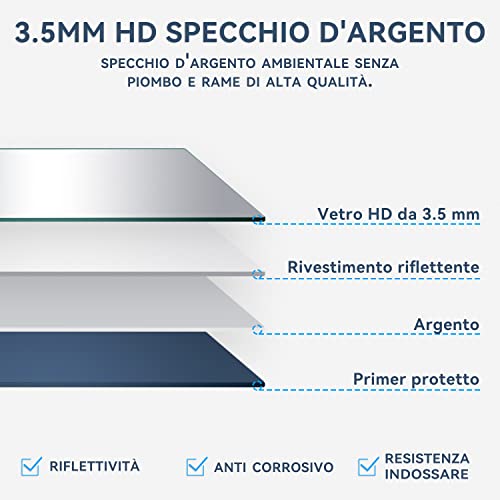 Facile da installare, viene fornito con istruzioni adeguate. Lo specchio del bagno può essere appeso orizzontalmente o verticalmente.