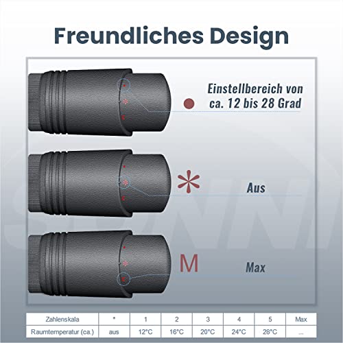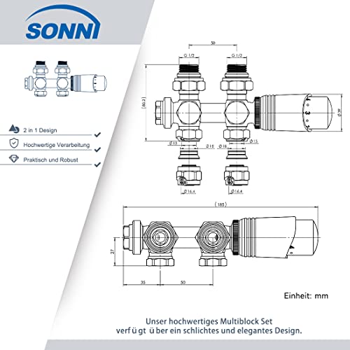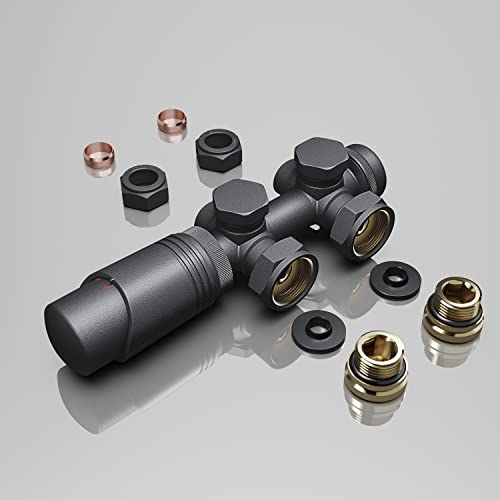SONNI Valvola per Termosifone, Valvola di Radiatore o Riscaldamento, Termostato Nero, per Connessioni Centrali da 50 mm, Componenti Accessori per Radiatore
