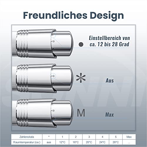 SONNI Valvola per Termosifone, Valvola di Radiatore o Riscaldamento, Termostato Cromo, per Connessioni Centrali da 50 mm, Componenti Accessori per Radiatore