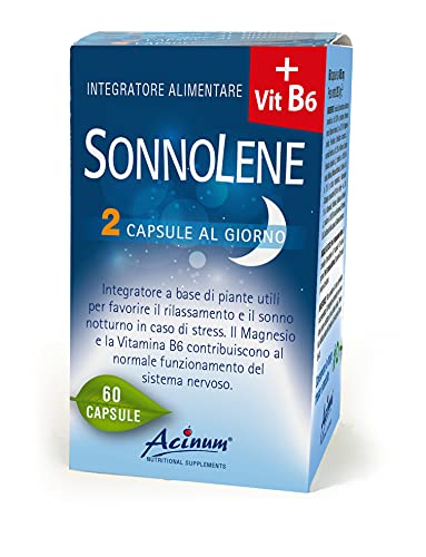 Sonnolene Acinum Integratore per Rilassamento e Sonno Notturno con Magnesio e Vitamina B6 60 Capsule