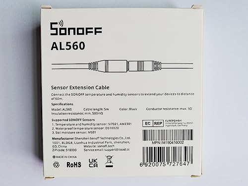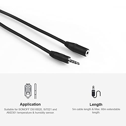 SONOFF AL560 Cavo di Prolunga per Sensore di Temperatura e Umidità, Lunghezza 5M, Adatto per il SONOFF DS18B20, Si7021 e AM2301 Sensore per Temperatura e Umidità
