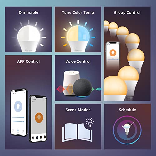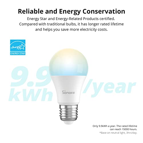 SONOFF B02-BL-A60 Wi-Fi Bluetooth Smart Dual Colour Heating and Cooling Lamp, 9W, 2700K - 6500K temperatura di colore regolabile, telecomando APP, funziona con Alexa e Google Assistant