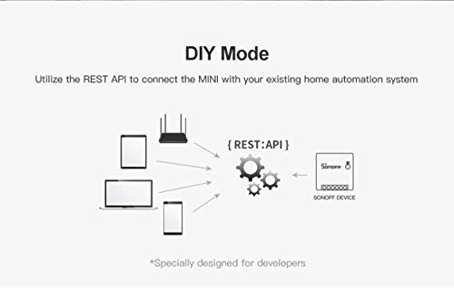 Modalità fai-da-te: supporta la modalità fai-da-te che consente agli utenti di integrare MINI nel sistema di controllo domestico intelligente open source di terze parti in tutto il mondo per ottenere il controllo LAN senza servizio cloud, come Home Assistant, openHAB, ioBroker, ecc. Anche nessun normale Wi-Fi connessione, può anche eseguire il dispositivo sul telefono.
