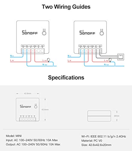 Sonoff MINI Smart Switch, telecomando wireless per elettrodomestici, fai-da-te il tuo sistema di automazione domestica tramite l'app eWeLink ...