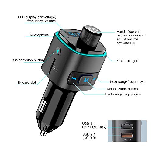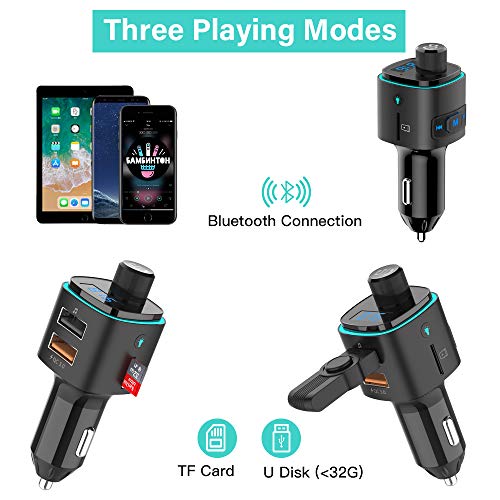 SONRU Trasmettitore FM Bluetooth, Wireless Trasmettitore Radio per Auto, Vivavoce Car Kit Adattatore Audio Lettore USB Caricabatteria da Auto con QC3.0, Display LED (Nero) ...