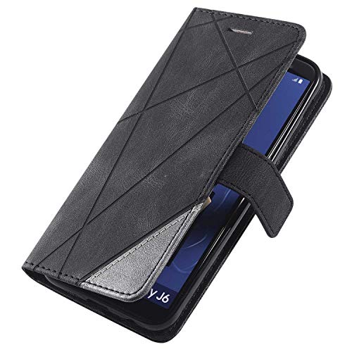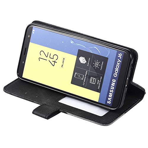 SONWO Cover per Galaxy J6 2018, Flip Caso in PU Pelle Case Cover Portafoglio Custodia per Samsung Galaxy J6 2018, [Kickstand] [Slot per Schede], Nero