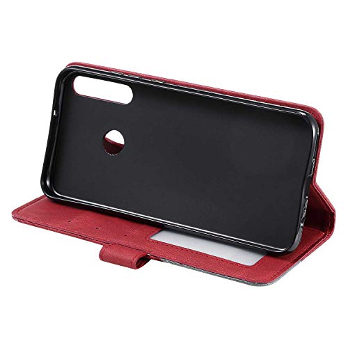 SONWO Cover per Huawei P40 Lite Flip Caso in PU Pelle Case Cover Portafoglio Custodia per Huawei P40 Lite E, [Kickstand] [Slot per Schede], Rosso