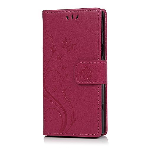 Sony Xperia XZ1 Compact Custodia Flip, YOKIRIN Custodia Libro Cover Leather, Con Il Supporto, Chiusura Magnetica E Slot Per Schede / Tasche Per Carte Di Credito Per Sony Xperia XZ1 Conpact - Rosa Rossa