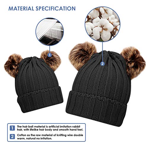 SOONHUA Cappelli da Famiglia 2 Pezzi Donna Bambino Bambino Inverno Caldo Lavorato a Maglia all'Uncinetto Berretto di Lana Pelliccia Pom Bobble Cappello