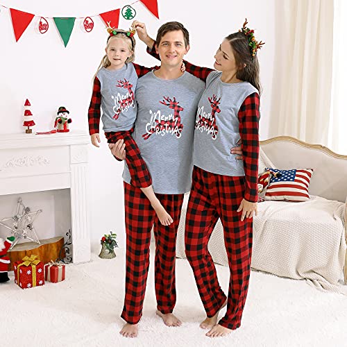 SOONHUA - Set di pigiami coordinati per famiglie, motivo natalizio a quadri con alce, morbido, pigiami per feste natalizie in famiglia, Bambino - Grigio, 18-24 Mesi