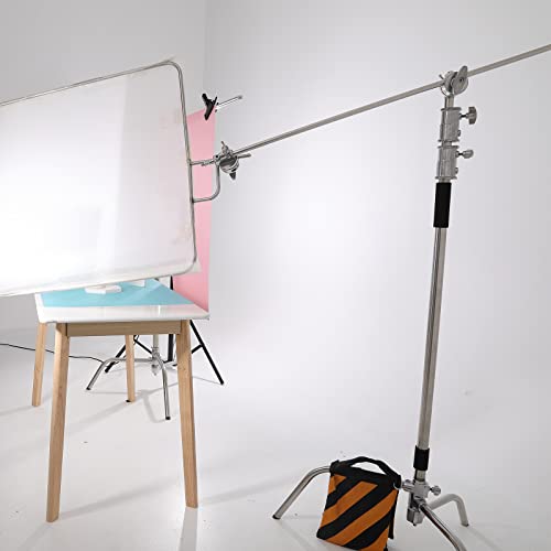 Soonpho Pro 100% Acciaio Inox C Stand per Fotografia, Stativo Fotografico Giraffa Regolabile 150 a 330cm con Braccio e 2 Teste di Maniglia, Supporto di Luce per Studio Fotografici/Monolight/Softbox