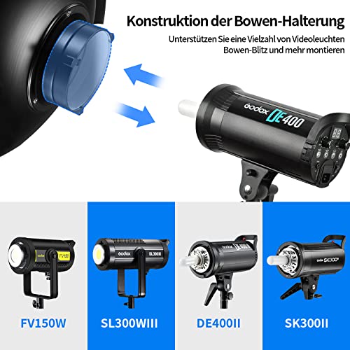 【Crea più effetti di luce】: usa solo Beauty Dish Bowens Migliore distribuzione delle sorgenti luminose, rendendo i contorni più tridimensionali e creando ombre più forti. Utilizzato