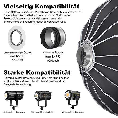 【 Serie SOONPHO SP Softbox Potente Compatibilità Versatile】SOONPHO Deep Parabolic Softboxes fornisce una fonte di illuminazione unica e multi-angolo;